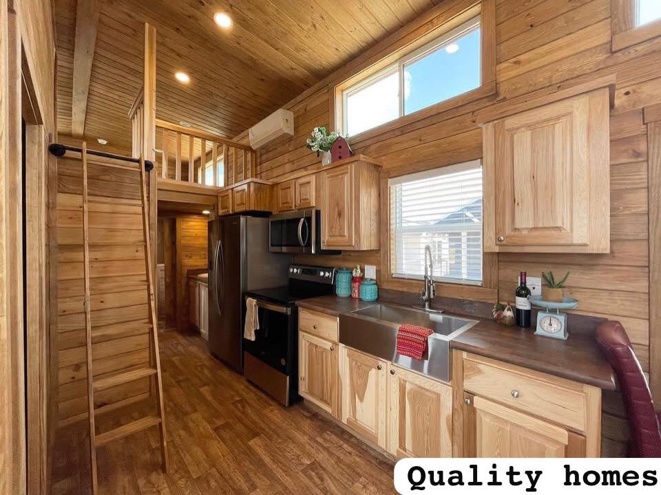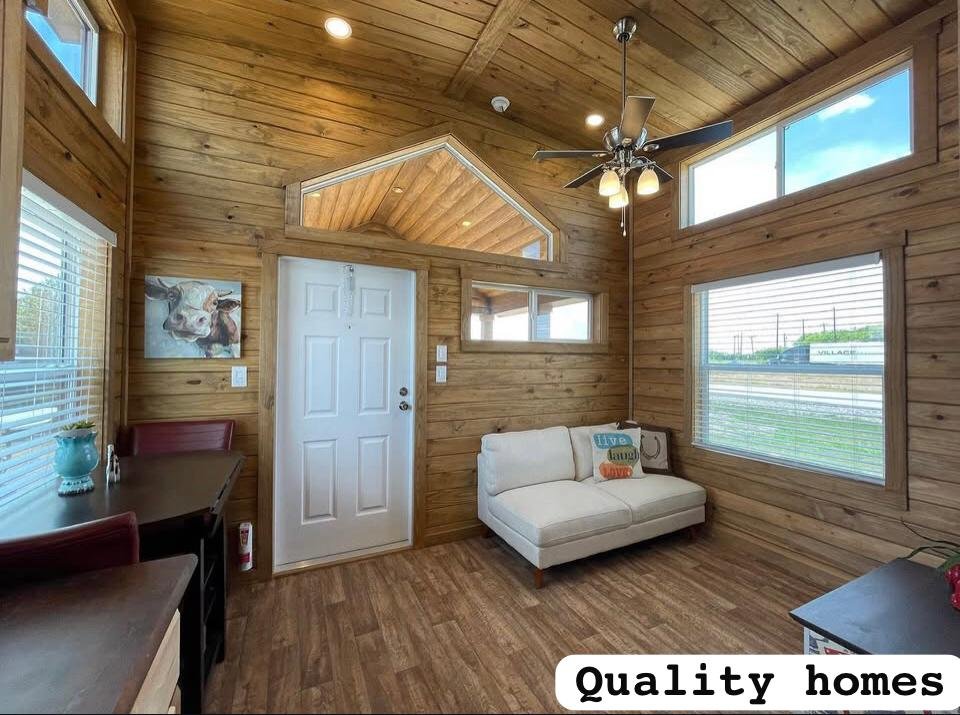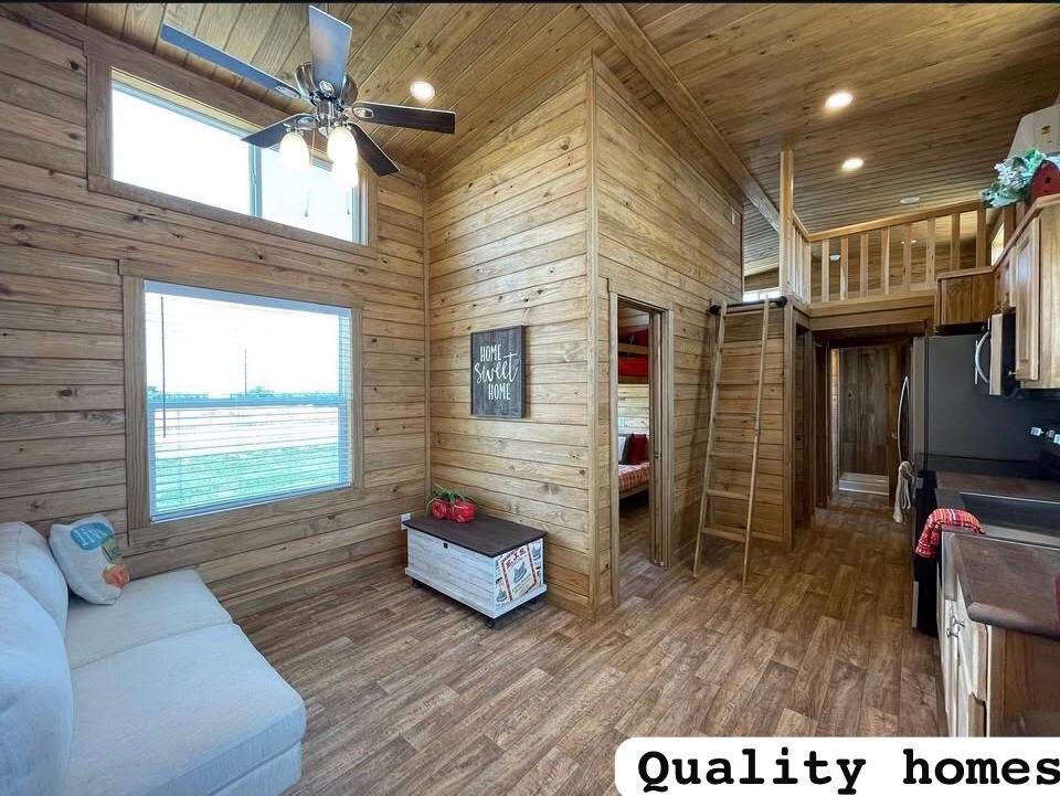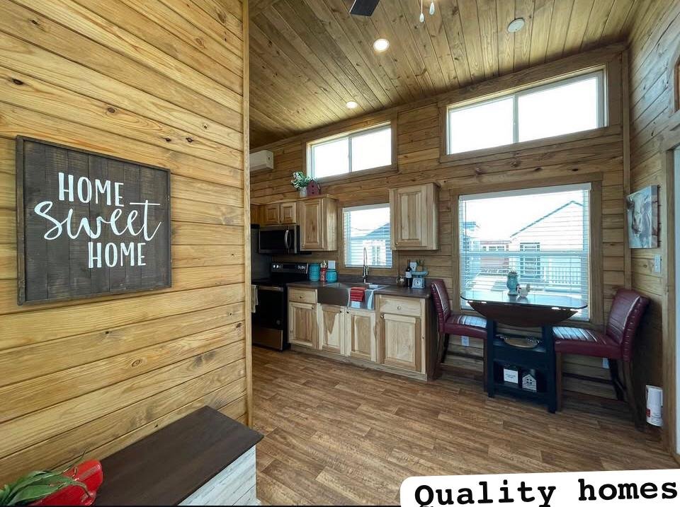 RV park model tiny house model Reimagined, features TWO BEDROOMS AND A LOFT! The master bedroom can fit a queen size bed.
