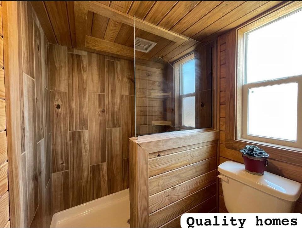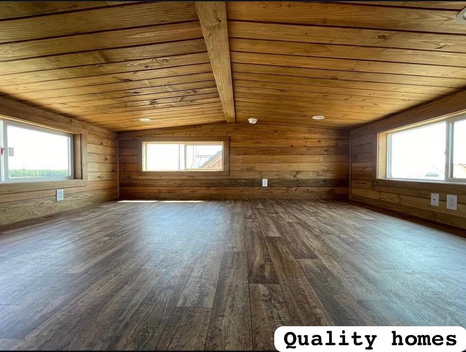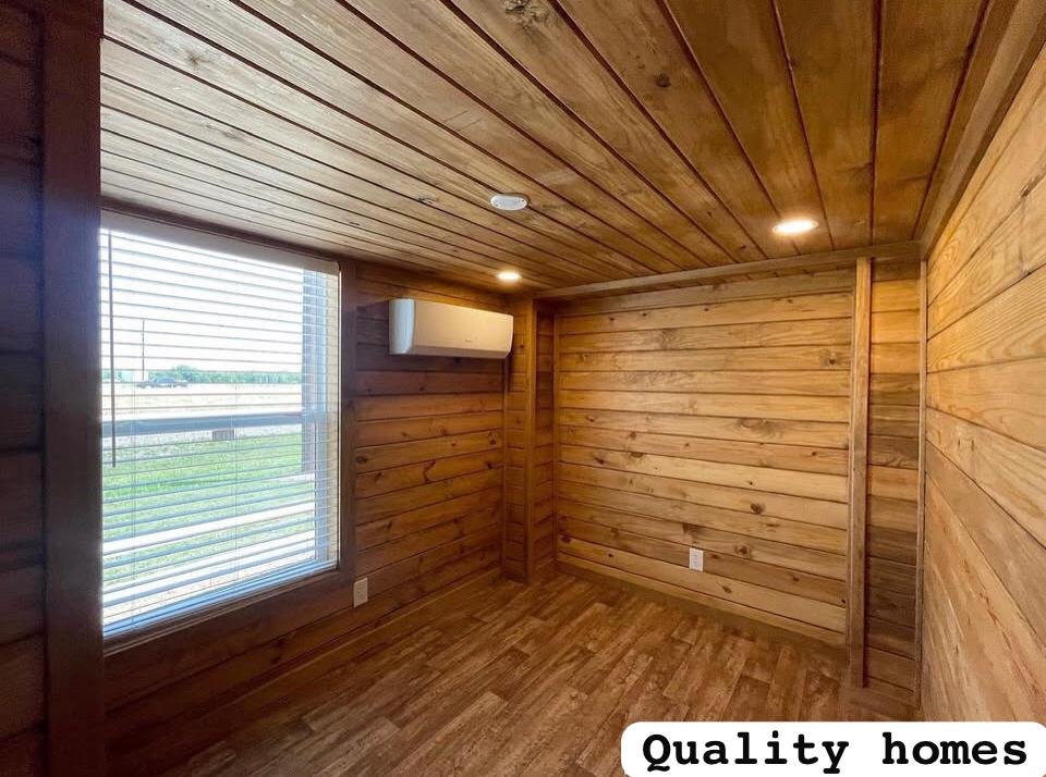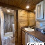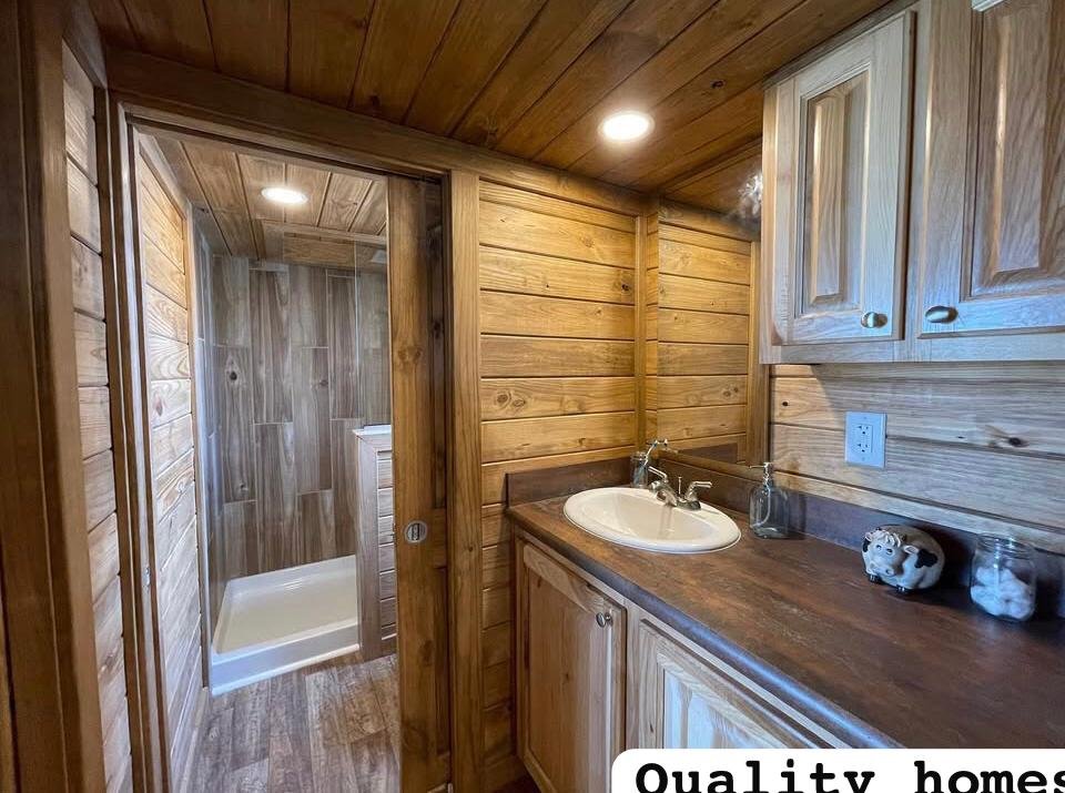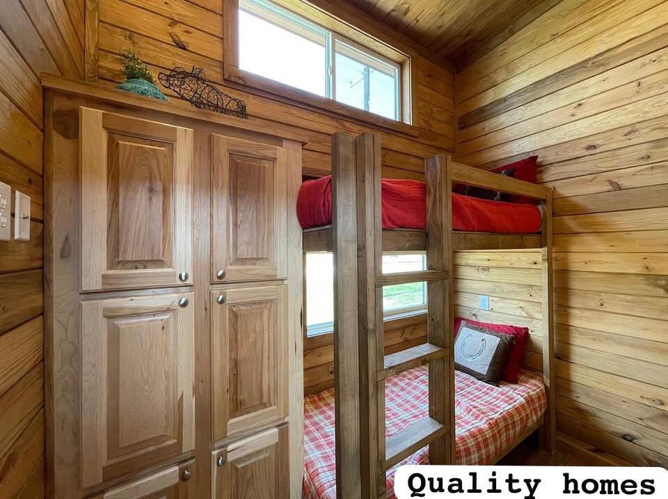 The separate bunkroom has built in bunks, and there’s a large loft for extra storage or sleeping space. Cabin exterior has stained Southern Yellow Pine down the full interior and ship lap on the exterior, this cabin is a true beauty. Featured with a black roof and black trim, the modern cabin is the perfect combination of trendy and traditional!