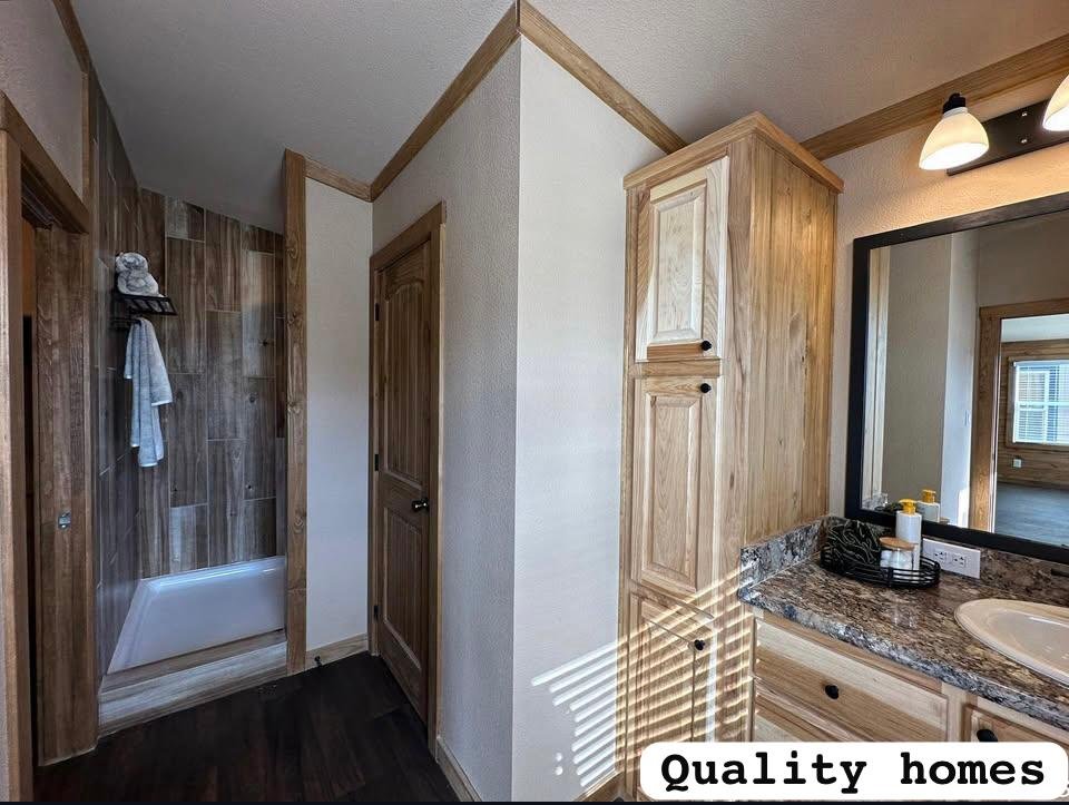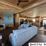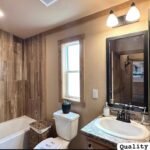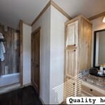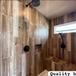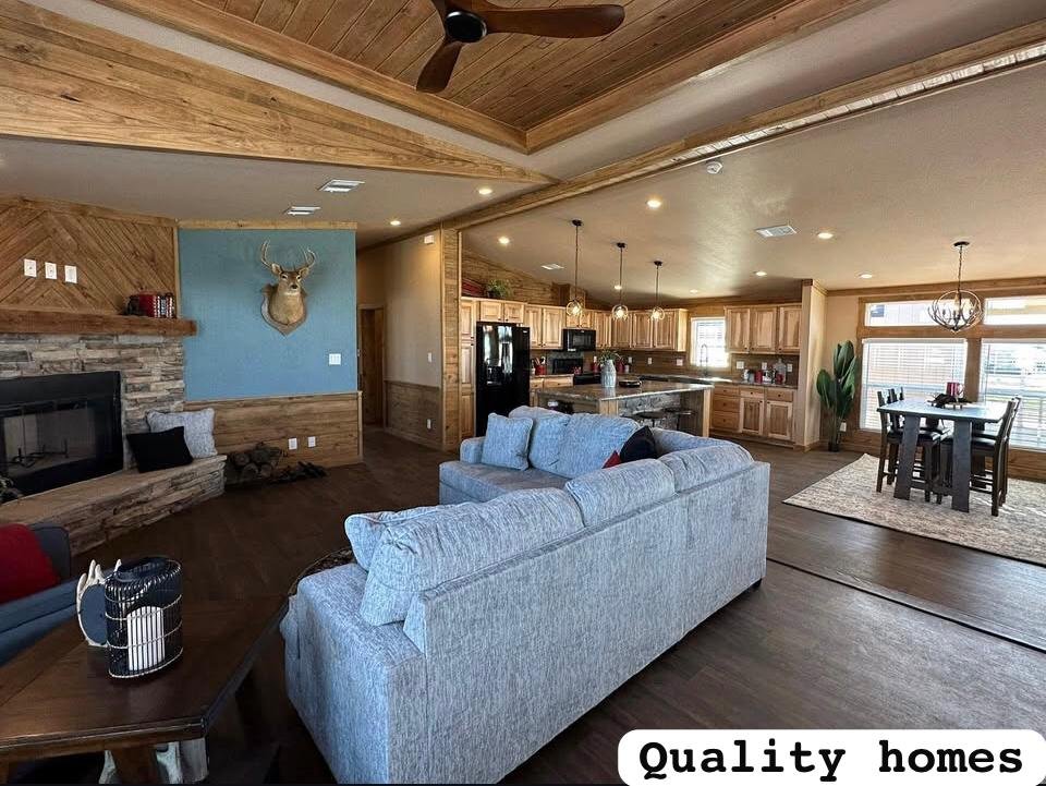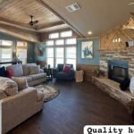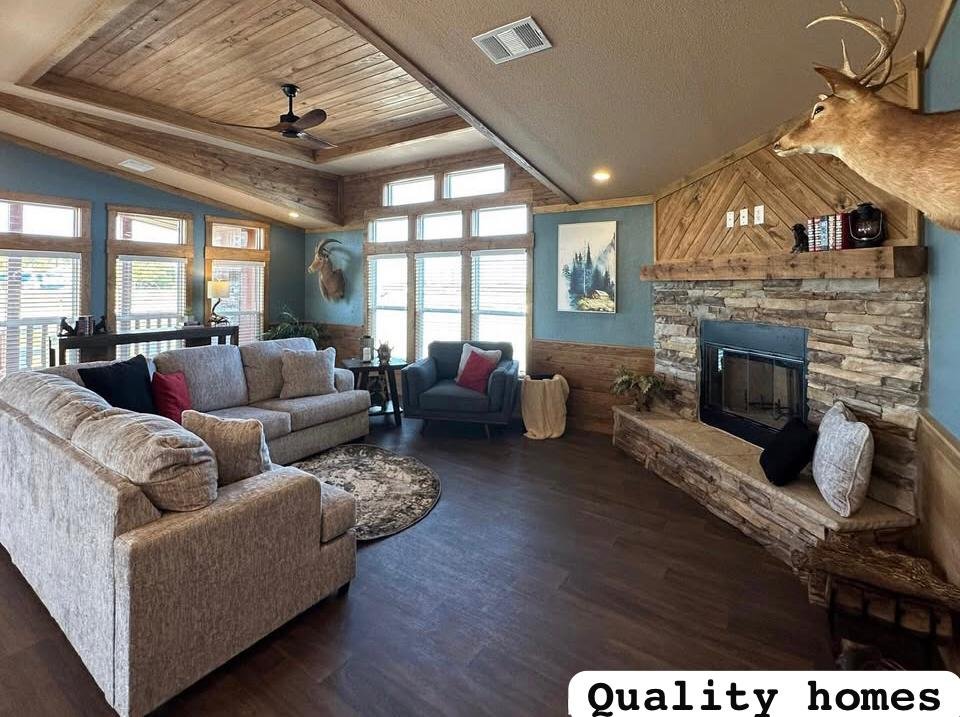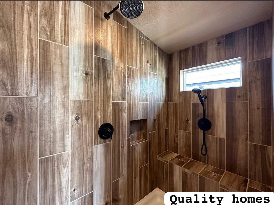 Comes with 2 wood burning fireplaces real log railing on huge 10×30 covered front porch hickory accents  with a rustic walking master shower