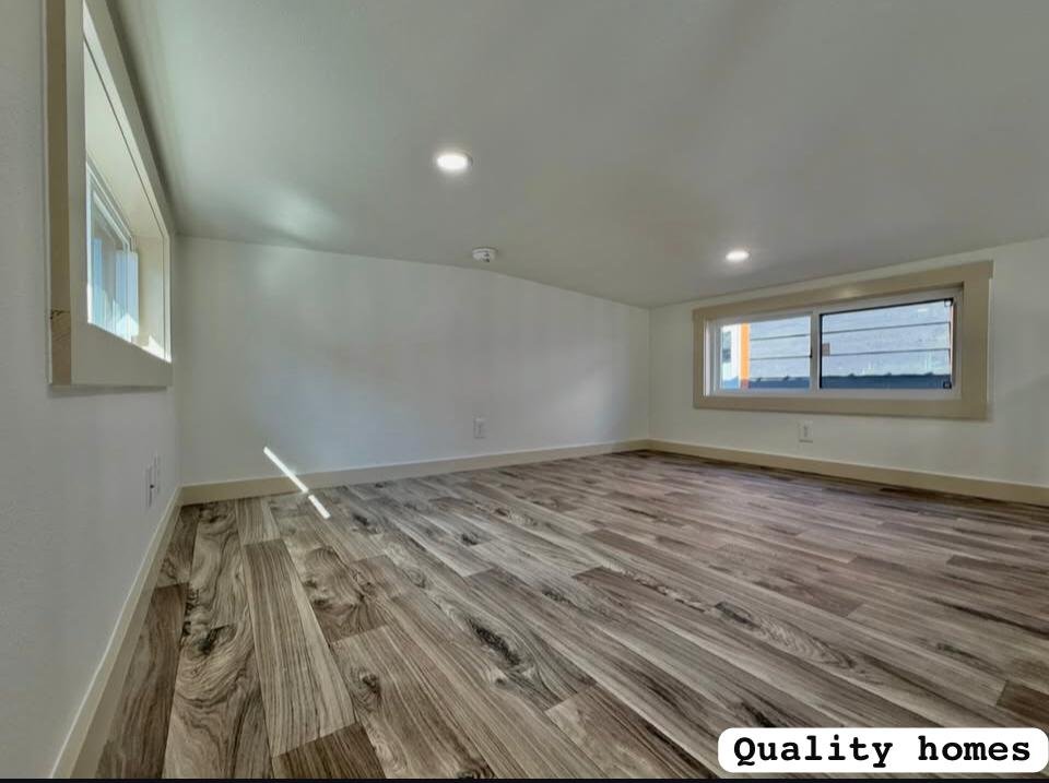 Downstairs bedroom fits a king bed with spacious living space