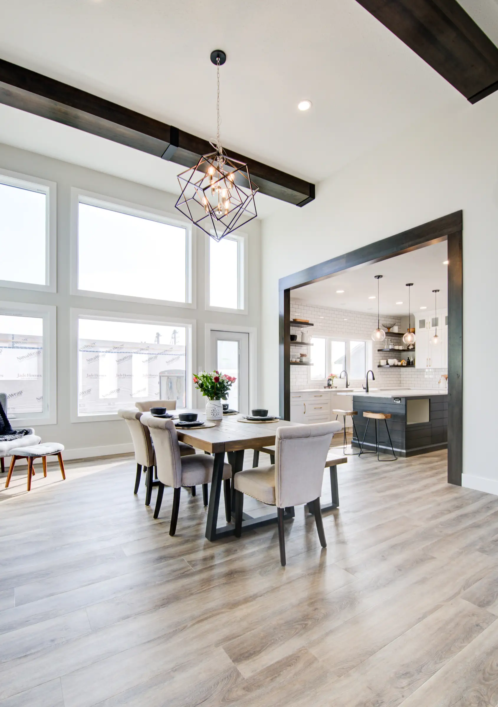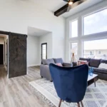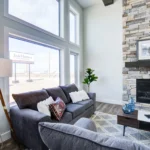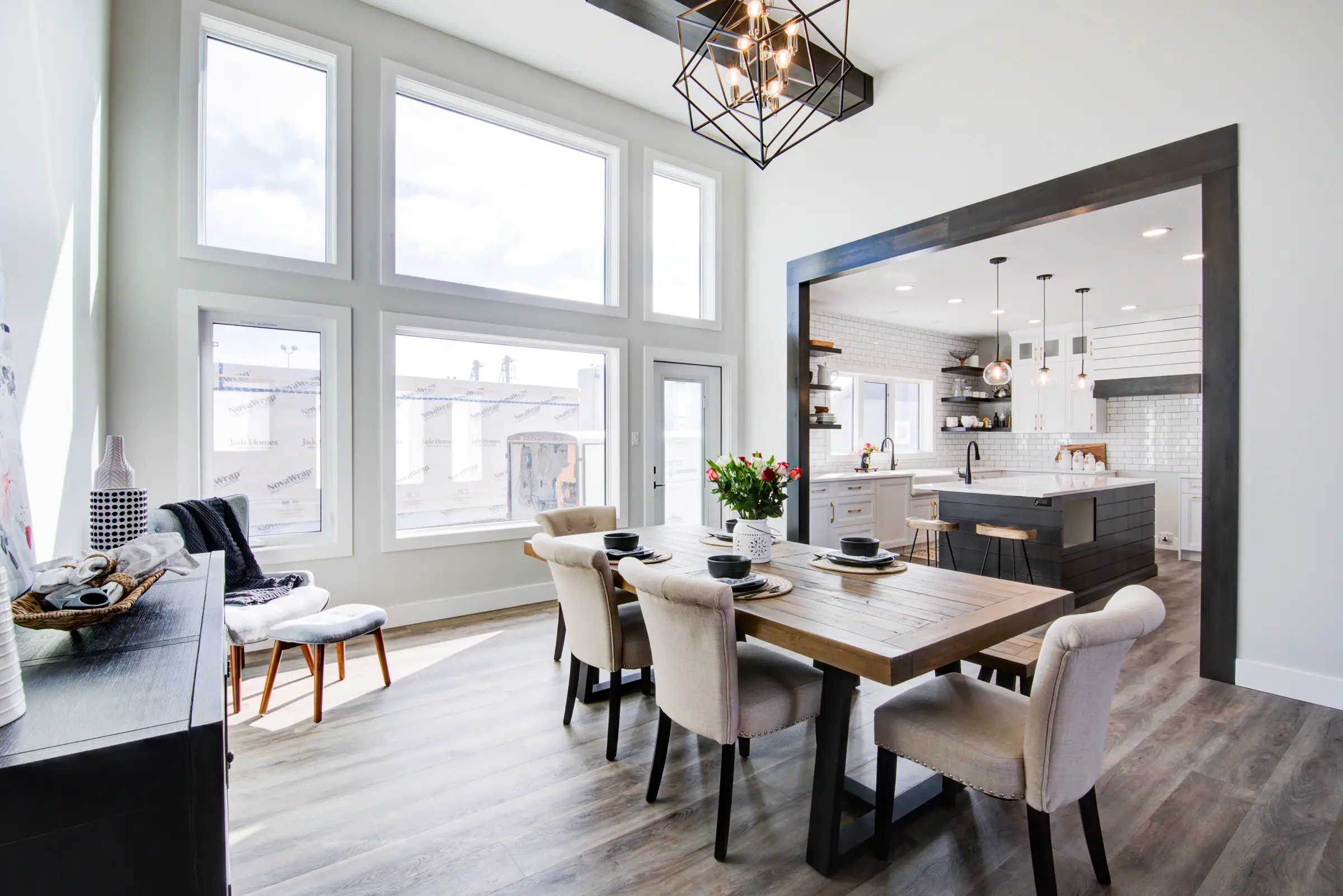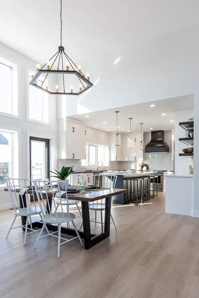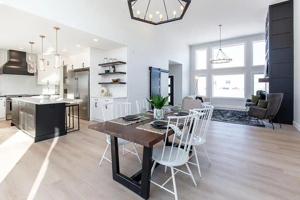 A modern, spacious home that offers huge windows with plenty of light in the living room and dining room.