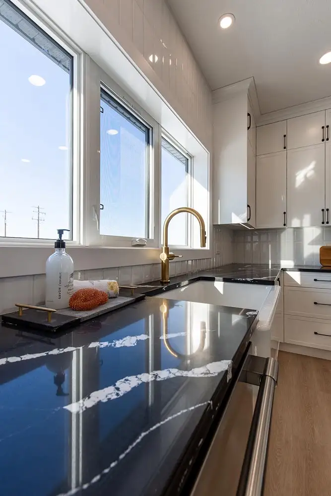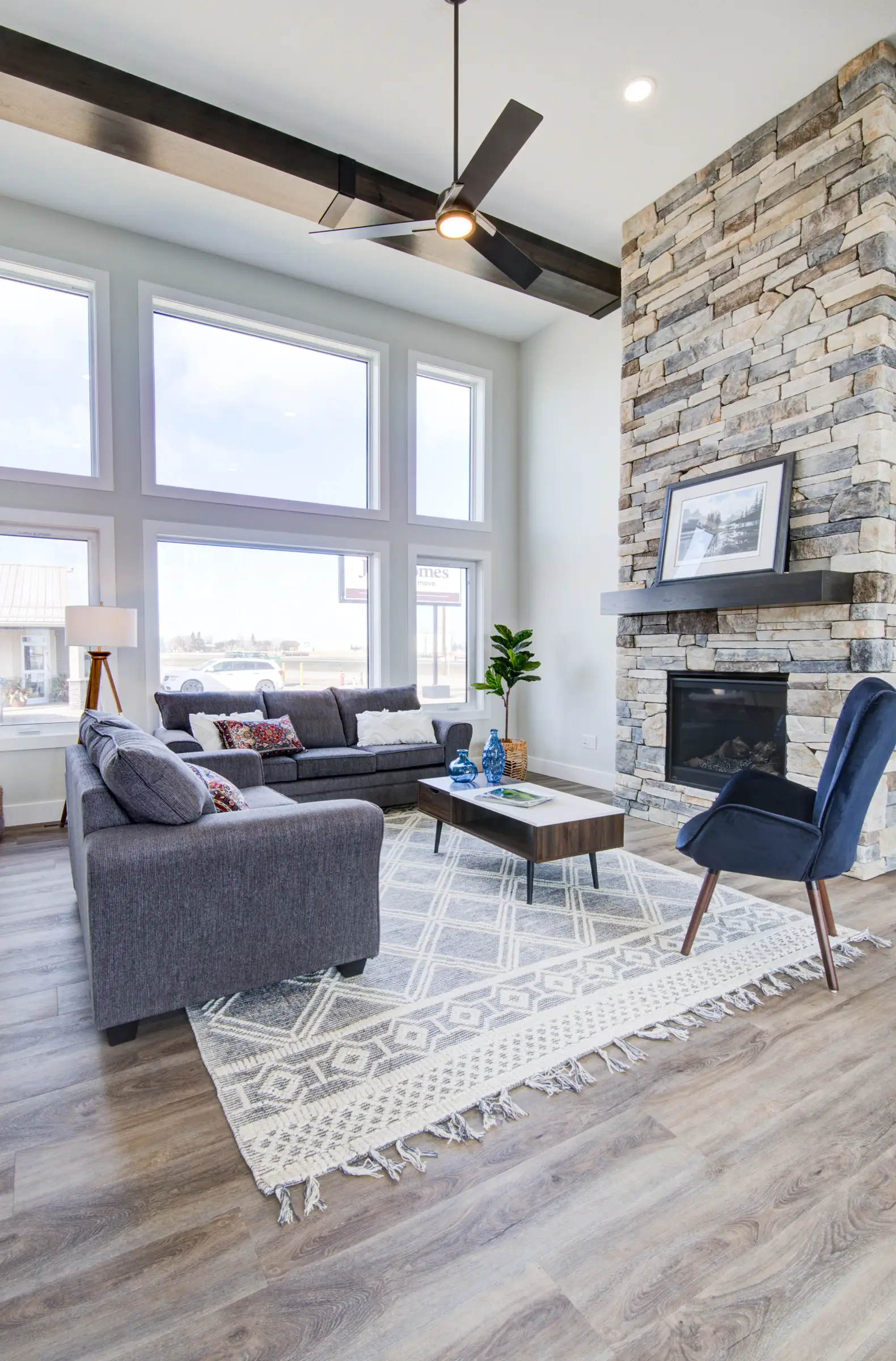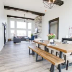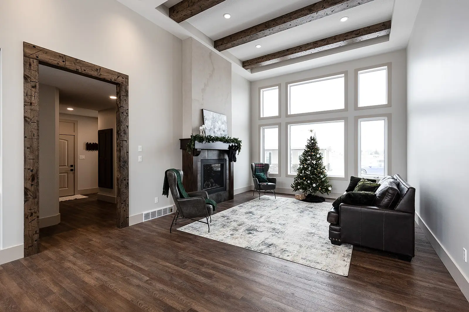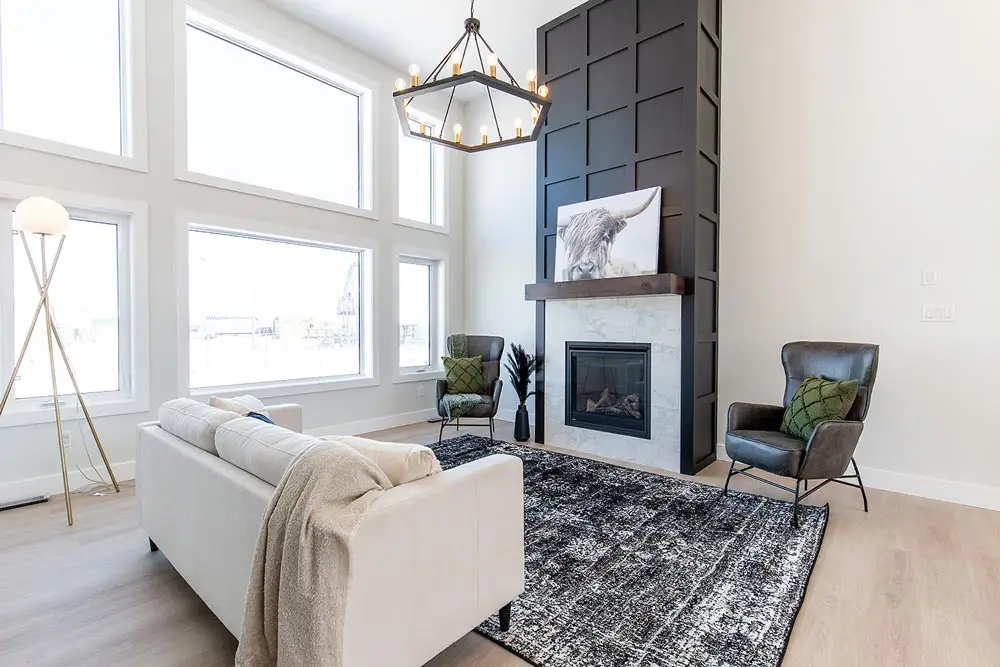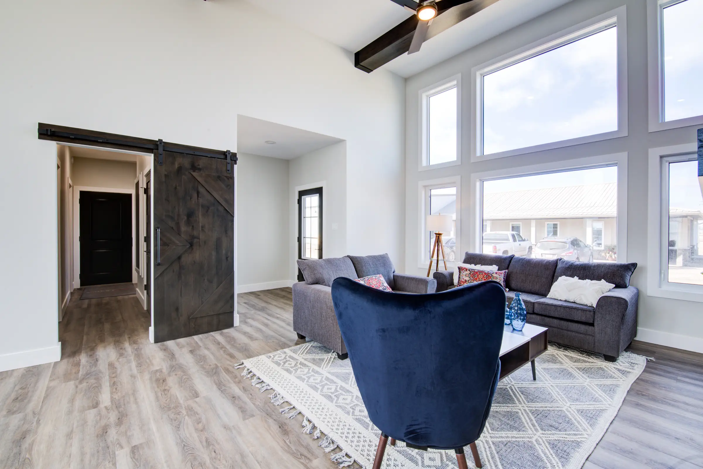 A modern, spacious home that offers huge windows with plenty of light in the living room and dining room.