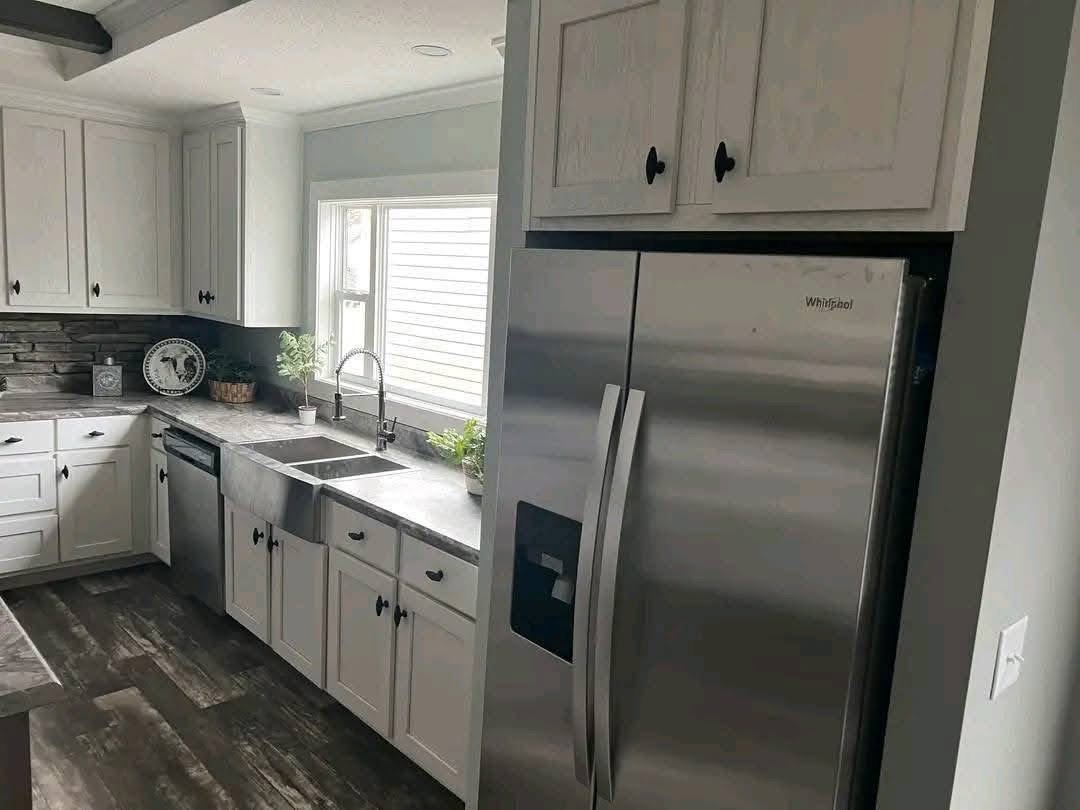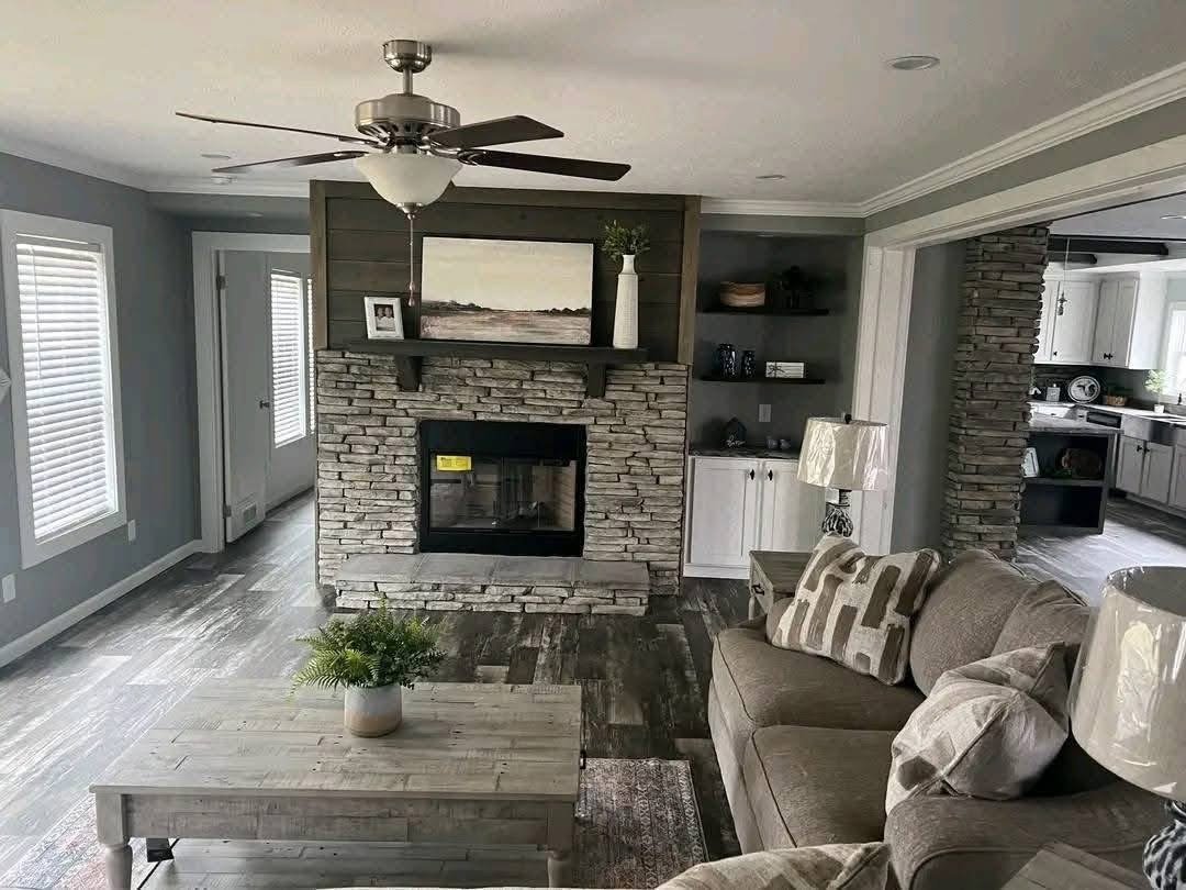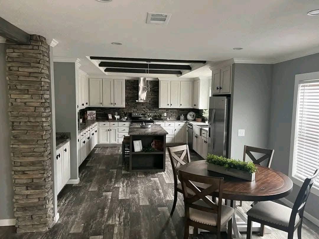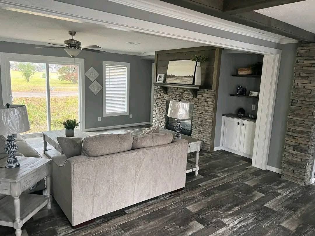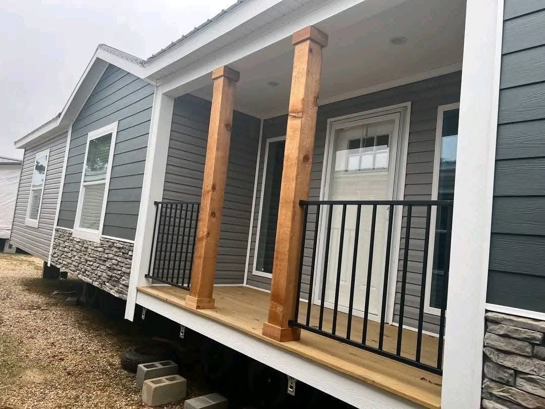 Check out the kitchen in this home, with real wood cabinets and stainless steel appliances its hard to beat! The living room features real stone accents with a wood burning fireplace! The Lynn has a very spacious master with a barn door, soaker tub, walk in shower, his and hers sinks, and a HUGE walk in closet! And not to mention, a PORCH!
