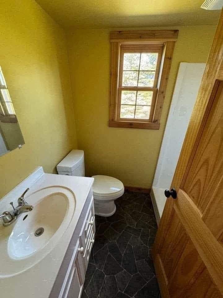 – Full bathroom, with 36″ shower stall